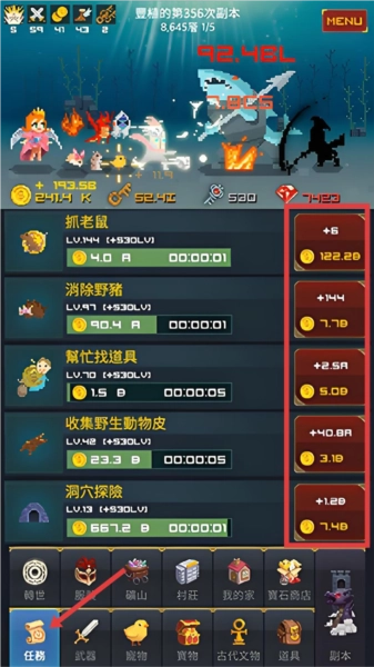 5、自动挂机功能:开启后角色将自动进行战斗与资源收集,离线期间的收益会予以保留,即便是碎片化时间也能让升级变得轻松简单。