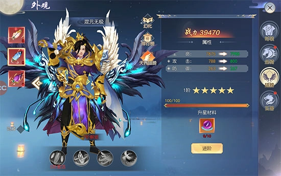 当五星集满时,翅膀就能进行进阶;进阶完成后,不仅会解锁全新的翅膀外观,还能获得新的翅膀技能。