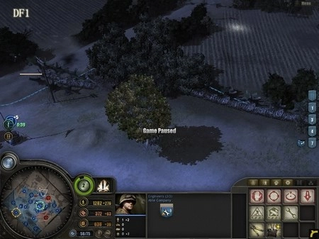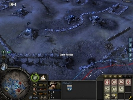 为何要使用半履带车?它的作用有两个:一是歼灭敌方步兵,二是补充己方兵力(估计很多人不清楚靠近它时按下“R”键有什么效果)。狙击手需驻守DF5区域,DF5是防御的核心要点,这里将成为阻挡德军进攻的关键力量。所有重机枪都要部署在此,把刚才由RM部队缴获的两门57mm火炮安置到这里,同时将解救出来的游骑兵部队和完成任务返回的RM部队全部部署到该区域。大约5分钟后,德军会发起突袭,但他们的主要兵力集中在西侧,暂时无需理会,后山的工兵继续建造防御工事即可。经验值很快就能积累到1点,建议优先升级步兵防御工事,这样步兵就可以参与建造防御设施了。随后调动DF5防区内达到3级的RM部队,顶着零星的炮火(这就是选择RM而非工兵的原因),在DF5的盘山小道上修建防御工事,彻底切断德军上山的路径。