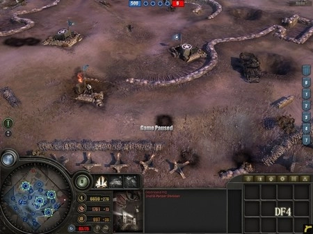 这时候前期组建的两支工兵队伍也该到位了,让他们分别在DF3和DF4这两个位置搭建如图所示的路障,能看到DF3的阵地前方已是一片焦土。