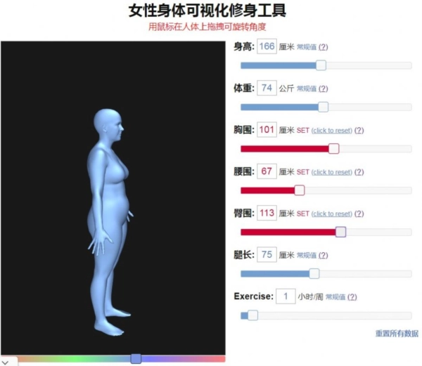 4、可以通过滚动条来进行调整,想了解自身体型的小伙伴可以使用这个功能。