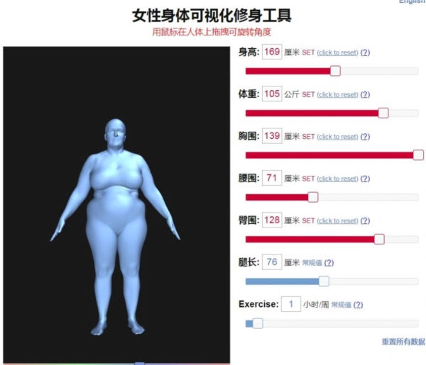 3、可便捷地进行展示,只需输入个人的身高、体重、三围、上下身比例等参数,就能自动生成三维体态模型。