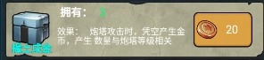 效果:炮塔发动攻击时,会凭空生成金币,生成的数量和炮塔的等级相关。