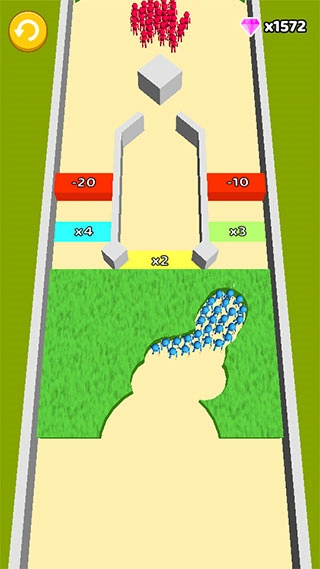 1、在游戏里,玩家得用手指操控屏幕,给火柴人士兵画出不同的路径,引导他们经过乘数道具——这个道具能帮我们增加士兵数量,这样就能消灭所有敌人了。
