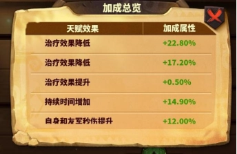提升自身与友军的生命值、每秒伤害及治疗效果,同时削弱范围内敌军的治疗效果,并延长引导类技能的持续时间。