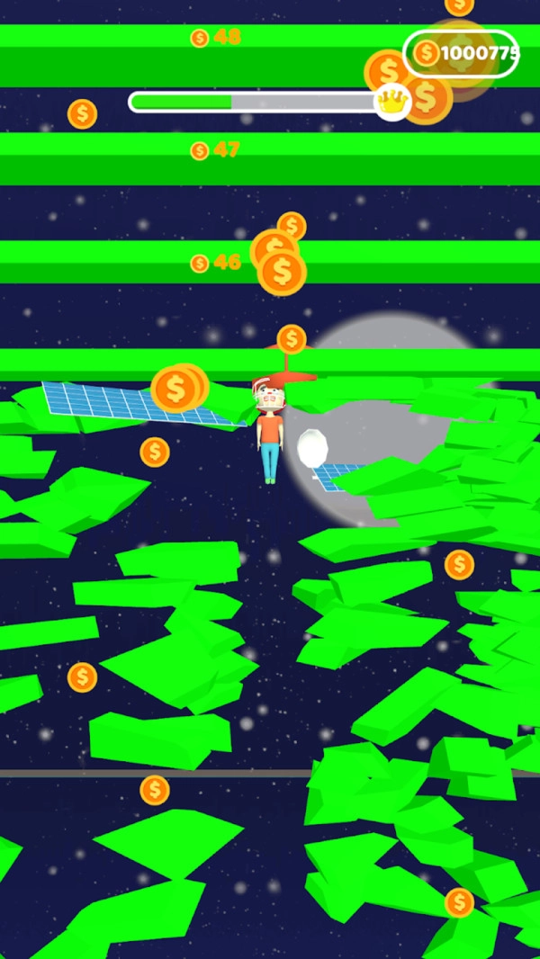 2.控制角色向上冲刺,一路上会遇到各种障碍,需要灵活处理并完美通过关卡;