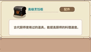 增加烹制双份的概率。我个人比较倾向于这个配件,前期由于制作的菜谱较为低级,你可能看不出它有什么作用。但到了后期,高级菜谱的售价更高,消耗的食材也都是高级食材,这种概率提升不仅能减少食材消耗,还能增加金币的弹性收益。所以我挺喜欢这个配件的。