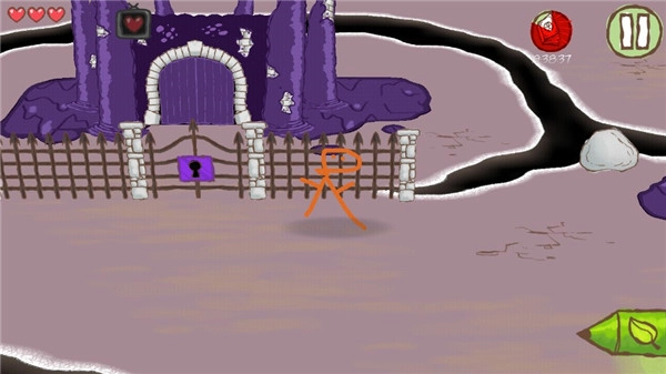 继续往前走就能看到第二只大老鼠怪物,同样一边画树叶一边躲避就能消灭它,之后我们就能救出第二个火柴人了。