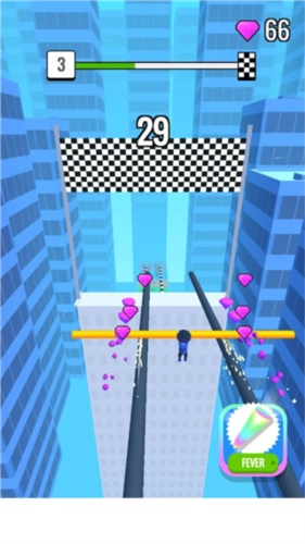 1、每位玩家都能操控自己的可爱小人在楼顶间来回移动,展现自身能力,尽量多地收集地面上的棍子。只有当你手里的棍子不断变长,你才会拥有更多的机会。