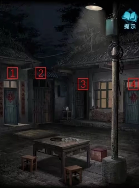 2要打开2号门,得用钳子拧开上面的铁丝;2号门旁边有个水壶,把香灰放进去就能制成香灰水。3号门内一片漆黑,得先解决照明问题才能进去。4号门被彤彤反锁了,连窗户也上了锁。桌上放着茶杯,旁边有“茶可明目”的字样,将香灰水倒进茶杯后,就能看到杯身的字了。