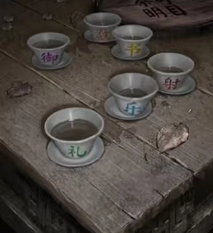 地上放着一个箱子,需要依据茶杯上的文字来解锁。打开箱子后就能获得钥匙。