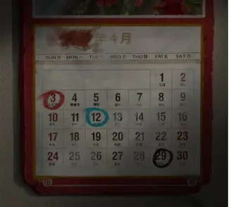 1、仔细查看房间,发现挂历上有不同颜色的圈,下方柜子的抽屉上了锁,锁上有颜色提示。结合挂历上的颜色标记,推断出密码是120329,打开抽屉后获得寿碗。