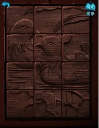3、从1号门进入后,用钥匙打开供桌右侧桌子的柜门,取出钳子。接着用钳子打开2号门进入,看到旁边立着一块警示牌,上面写着“勿弄坏草人,当心报应”。地面上放着一把铡刀,后方堆着干草。先从稻草人身上取下飘带,将飘带放在铡刀下铡成三段;再用这三段飘带捆绑干草,做成一捆稻草;把稻草接在稻草人身上后,就能得到它的火钳。随后进入3号门,用火钳拉开灯。桌上有一台老式随身听,缺少磁带和电池,而磁带散落在旁边。地上的小神龛里有个盒子,完成拼图(见下图)后打开盒子,即可获得铜护甲。