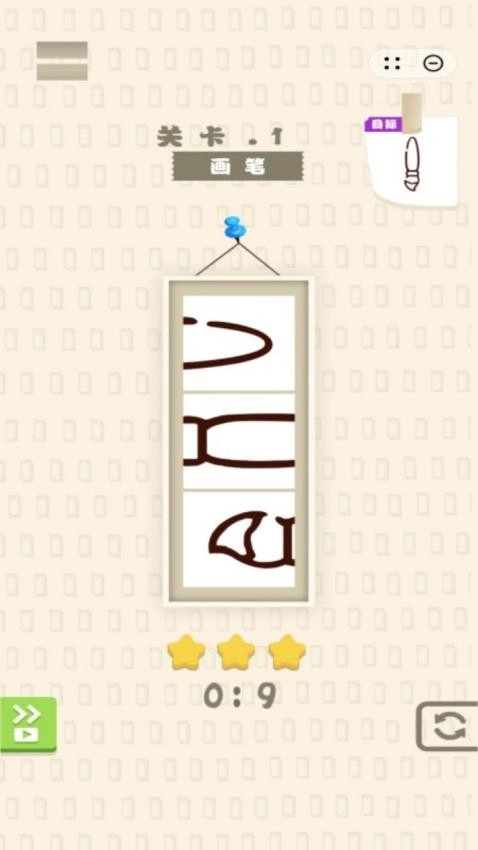 2、开启第一关,能够在里面看到与画笔相关的三个图案,按照目标要求将其合并成完整的画笔。