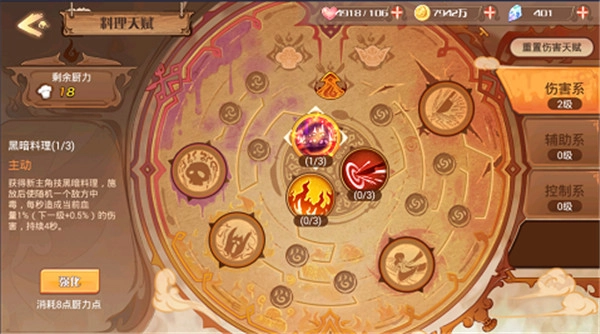 5、小费:和知名度的机制相似,在售卖菜品时,有一定概率收到顾客大方给出的小费。小费是与金币完全独立的另一种货币,可用于在小费商城中购买卡牌碎片及其他材料。