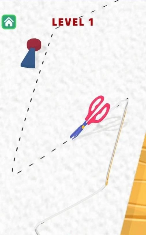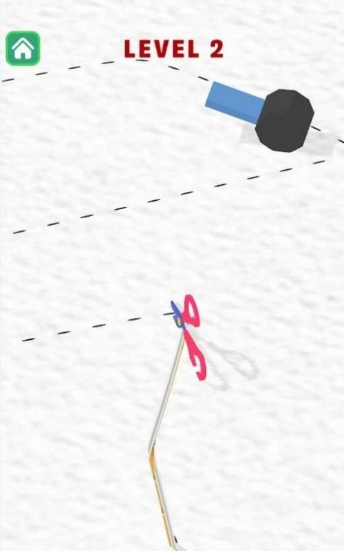 1、点击开始后,剪刀沿虚线快速前进,遇到障碍时点击或长按屏幕停止前进。