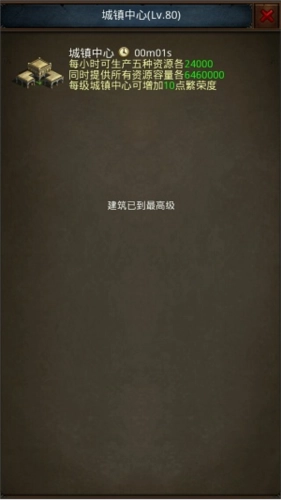 (2)功能:作为主建筑,它负责调控其他核心建筑的等级成长;随着自身等级的提升,不仅能提高资源的产出量与存储容量,还会解锁郊外的资源地块。