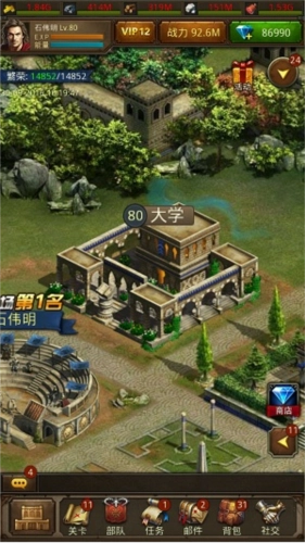 (1)大学:建造在城内的空地块上,建造过程需要消耗资源,且存在等待时间,消耗钻石可立即完成建造;升级或建造建筑时,等待过程会占用1个建筑位(即空间);若升级资源不足,可直接用钻石替代资源完成升级操作。