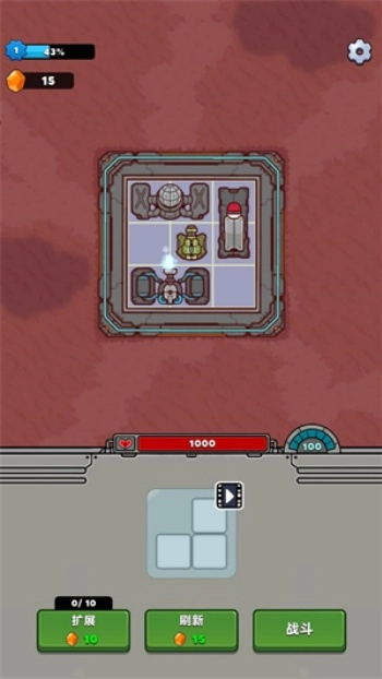 6、一波结束后玩家会进入休息状态,你可以点击刷新来获得新的炮塔,或者点击扩展来扩大你的基地。