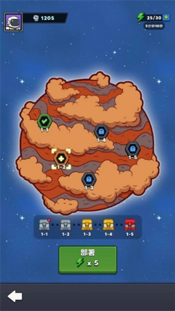 2、点击开始后可以选择想要挑战的关卡,选好后点击部署按钮正式开始。
