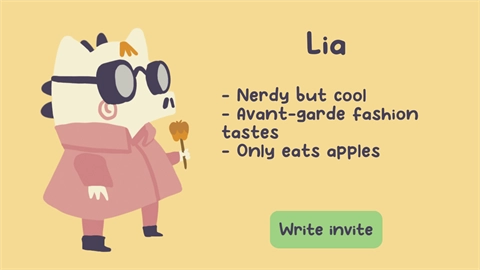 1、首先进入到游戏之中,系统会介绍玩家需要写信给自己的伙伴,邀请他们一同前来,接着从众多角色里选择合适的对象开始写信。