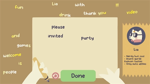 鼓鼓Googoo是一款风靡全网的模拟经营休闲游戏,它有着可爱治愈的画风。玩家需要邀请动物伙伴们参加派对,根据不同角色的喜好来设计内容,通过点击操作制作特色邀请函,用有说服力的文字和精美的贴纸来吸引它们,尝试邀请所有伙伴参与派对,尽情享受沉浸式的模拟经营乐趣。如果你也喜欢这款游戏,那就抓紧时间来体验吧。