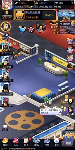 协助拍摄:选择对应题材的导演后,拍摄过程中有概率提升艺人的属性值。