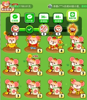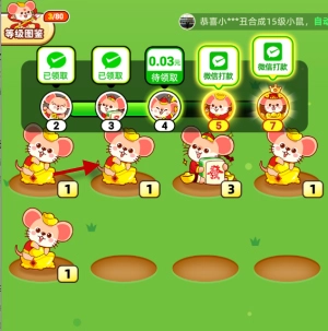 3、持续合成新的鼠鼠就能获取奖励,达到特定等级还能直接提现红包,玩得越久,提现金额就越多!