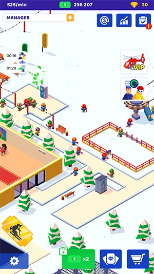 【滑雪场闲置大亨】模拟经营游戏。在这里,您将扮演一位精明的滑雪场经营者,从零开始打造并管理属于您自己的梦幻滑雪胜地。无论是壮丽的山脉风光、刺激的滑雪赛道,还是温馨的休憩区域,一切都在您的掌控之中。玩家可以自由发挥创意,打造独一无二的滑雪场,展现个人风格和审美。