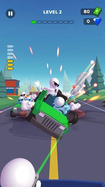 这绝对是你从未感受过的超燃枪战体验!在两车相撞前,精准射爆对方车辆,顺利冲过终点就能解锁下一级关卡!射击前得仔细瞄准,毕竟子弹数量有限,没法一直狂轰滥炸,所以“稳、准、狠”这三大要点必须牢牢掌握!