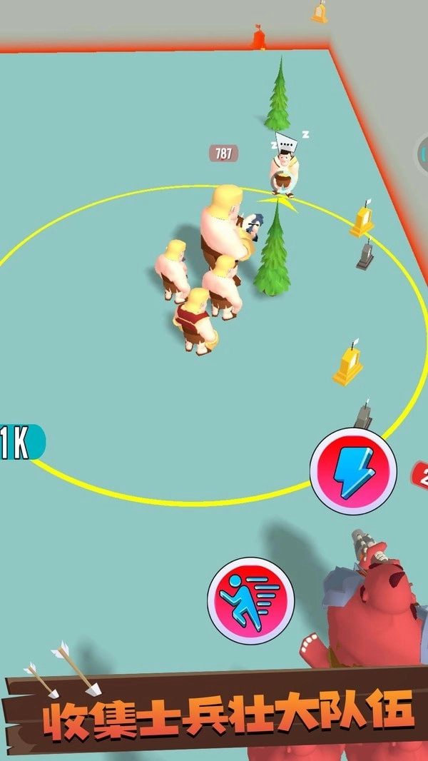 2、游戏开始后,你可以通过移动来持续收集并解锁沉睡的士兵,以此壮大自己的队伍。