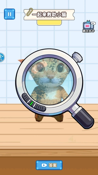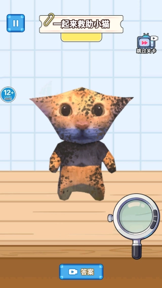 3、点击右侧的放大镜图标可以放大视野,再配合旋转按键调整角度,通过精准清洁帮助小猫彻底清除污垢。