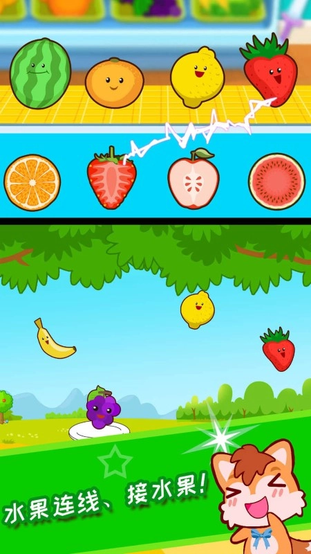 这里有水果连线和接水果的玩法,能给孩子带来新鲜感。