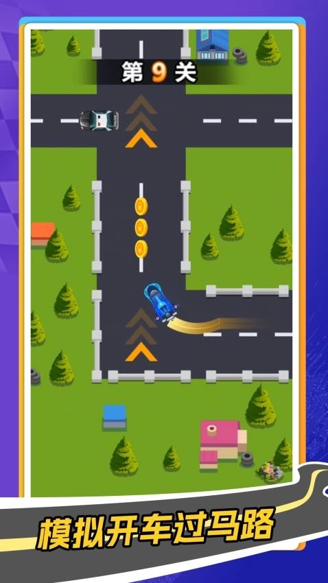 4、持续滑动屏幕来操控车辆前进,使车辆到达带有黑白格的终点区域,以此完成当前关卡的挑战。