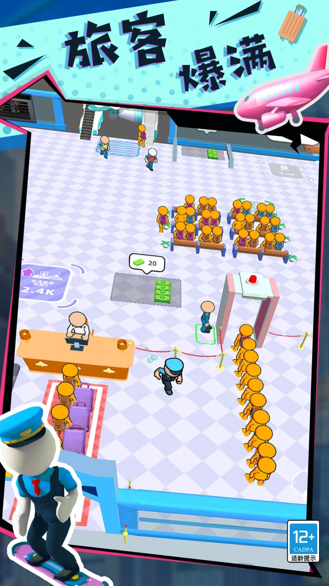 4、在游戏中扮演机场管理员,解锁各类服务任务,接待一批批登机旅客,完成安检与登机服务,负责整个机场的运营管理。