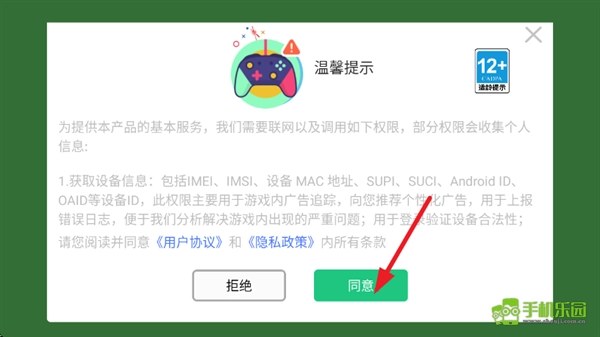 1、第一次进入游戏时,要阅读并同意用户协议和隐私政策,完成基础的进入流程。