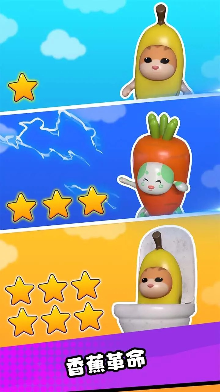 2.您的目标是快速奔跑,以收集这些奇特的可爱怪物,成为猫香蕉进化大师