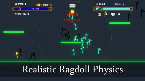 1.刺激的火柴人战争,玩家能够操控自己的火柴人克隆体展开战斗。