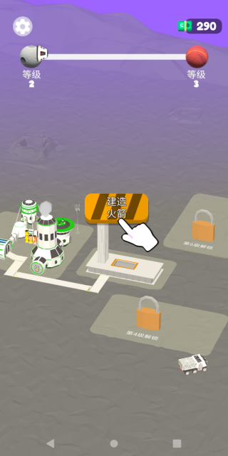 5. 顺利到达目标星球就能完成关卡,并得到对应的奖励。用金币提升工厂等级,制造出能让飞行器飞得更高的零部件吧!