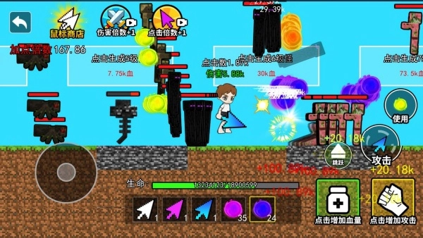 1.这款游戏的核心乐趣在于视觉上极具冲击力的伤害数值反馈,硕大的红色数字持续跳出并叠加,为玩家带来强烈的成就感。