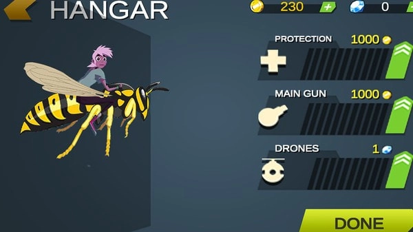 4、躲避他们复杂的攻击。你可以不断的升级你的黄蜂,提高它的作战能力。