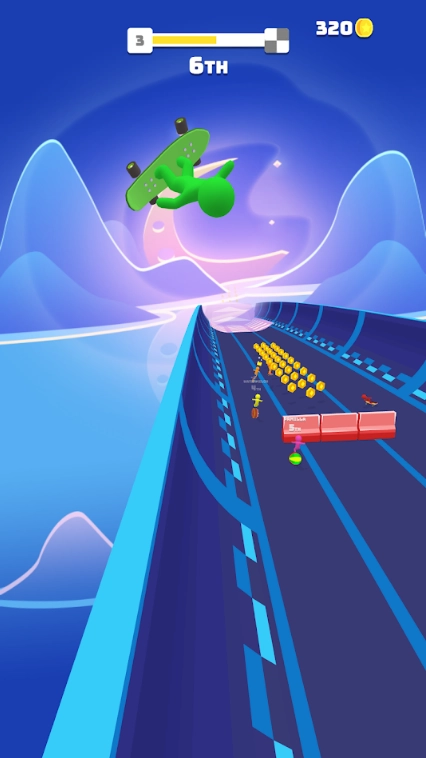 2、核心玩法依旧围绕竞速展开,玩家需要在地图里与另外三名对手角逐,争夺第一名的位置。