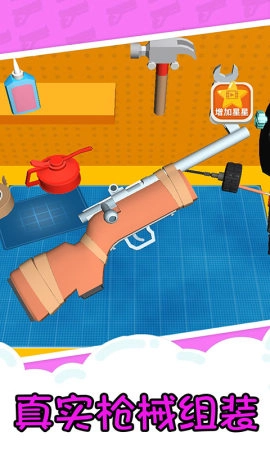 通过枪械达人这款游戏玩家可以自由的设计以及制作出心目中理想的武器,游戏通过逼真的3D建模来打造出最真实的场景,所有枪械的内部构造都需要合理的进行排布,还有丰富的关卡等待玩家的挑战,喜欢的话就赶快来吧!