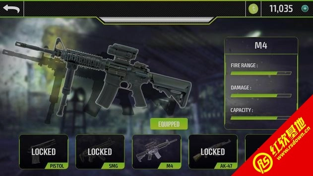 2、这里提供所有枪械,对于快速完成任务的玩家,你收集的金币可以在这里使用。