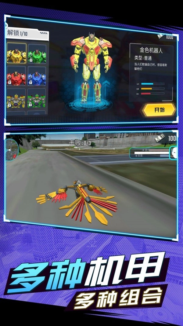 2、战地机甲吃鸡控制你的机器人打败更多的敌人,保护城市的安全,机器人之间的战斗是很热的血;
