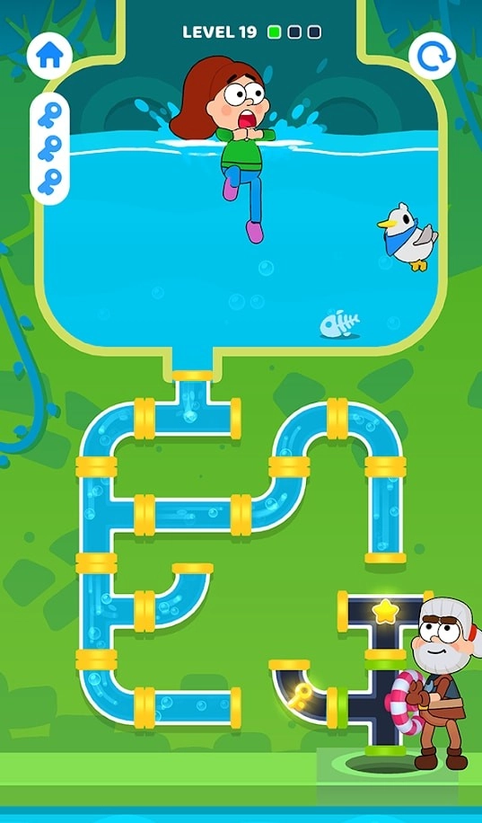 1、采用超清精美的卡通画面设计,设置不同的水池关卡,目标是拯救身处危险中的人。