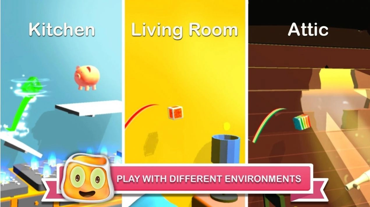 3、需要控制可爱的小果冻,以避开途中的障碍物和陷阱并沿途收集散落的果冻。