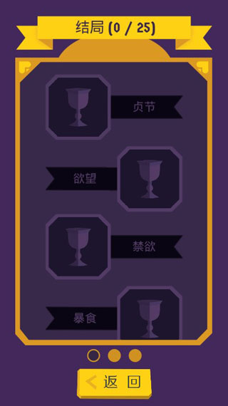 游戏设有多种结局,满足特定条件就能解锁不同结局,包括贞节、欲望、禁欲、暴食、慷慨、贪婪、勤奋、懒惰、耐心、愤怒、仁慈、嫉妒、前辈、骄傲、贫困、谋杀、自杀、营养不良、家庭、执行、解雇、叛变等。