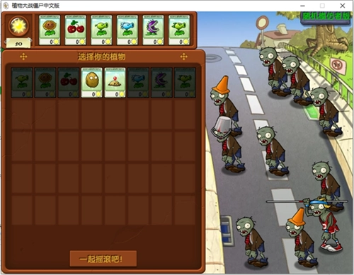1、首先我们安装好游戏后,点击进入游戏,随机选择一个关卡开始游玩。游戏开局通常需要先挑选常规植物进行种植,不过有一点要注意——必须带上向日葵和樱桃炸弹,因为进入游戏后它们会变成模仿者。