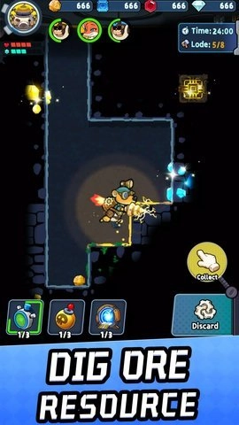 2、操作十分简便,玩家进入矿场后,只需通过点击方向键来操控角色移动,接着点击场景里的土块就能开展挖掘操作。